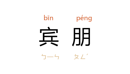 引南朝 宋 鲍照 《代堂上歌行》:“车马相驰逐,宾朋好容华。”《西游记》第六九回:“我又不曾与他会茶会酒,又不是宾朋邻里,我怎么认得他!”陈毅 《颐和园“五一”春游纪盛》诗:“大家翩翩起舞,无分各国宾朋。”