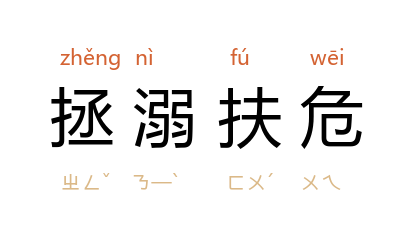 ⒈ 拯:救。溺:落水者。危:危难。救助落水者,扶持危难中的人或国家。亦作“拯危扶溺”、“拯危济困”。