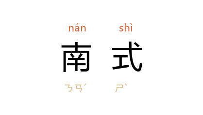 ⒈ 北平一带称南方物品、食品的样式为「南式」。