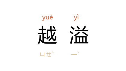 引汉 应劭 《风俗通·过誉》:“方殊俗越溢,大为边害。”汉 马融 《论日蚀疏》:“州郡之士,出身贫苦,长於检柙,虽专赏罚,不敢越溢。”《后汉书·应劭传》:“鲜卑 越溢,多为不法。”