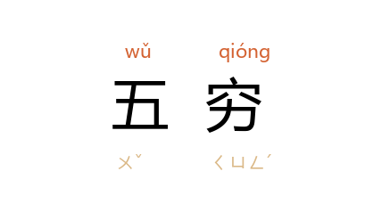 ⒈ 唐·韩愈作《送穷文》,谓智穷、学穷、文穷、命穷和交穷是使人困厄不达的五个穷鬼,遂三揖而送之。后常以“五穷”喻厄运。