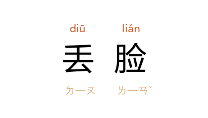 引鲁迅 《且介亭杂文·说“面子”》:“这‘脸’有一条界线,如果落到这线的下面去了,即失了面子,也叫作‘丢脸’。”
