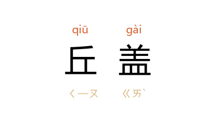 ⒈ 不知;阙如。 孔丘 主不知者则阙如,故以“丘盖”为不知或空缺之词。