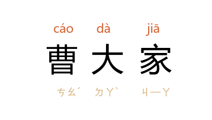 ⒈ 即 汉 班昭。班彪 之女 班固、班超 之妹。嫁 曹世叔,早寡,屡受召入宫,为皇后及诸贵人教师,号曰“大家”。家,通“姑”。