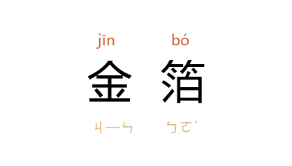 ⒈ 亦作“金薄”。黄金捶成的薄片。常用以贴饰器物或佛像等。