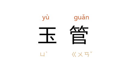 ⒈ 乐器名。玉制的管乐器。宋·辛弃疾〈菩萨蛮·与君欲赴西楼约〉词:「临风横玉管,声散江天满。」也作「玉琯」。
