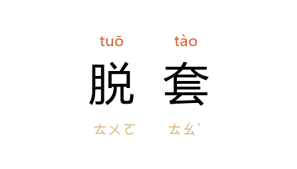 引清 李渔 《奈何天·逼嫁》:“呀,先出来了,好脱套的新人。”《天雨花》第二四回:“少年妇女何处好?性情拗强不和温,娇羞作妆妖态,些些性意就生嗔,那比老年人脱套,不作姣羞妖怪形。”