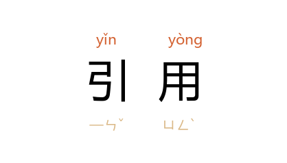 ⒉ 言论及文章中援用古书典故、名人格言以及俗语等等,称为「引用」。是一种诉之于权威或诉之于大众的修辞法。