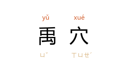 ⒊ 相传为 夏禹 决 汉水 时的住处。在今 陕西省 旬阳县 东。二字。穴右有泉,味甚清洌。世传 禹 决 汉水 时居此。”