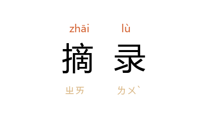 例如:「我从这本书中,摘录了几段文字,供你参考。」