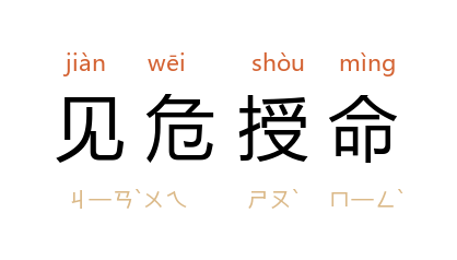 ⒈ 面临危难时,能不惜牺牲个人生命,全力以赴。也作「见危致命」、「见危受命」。