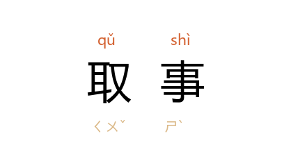 引唐 马总 《意林》卷一引《太公金匮》:“源泉滑滑,连旱则絶。取事有常,赋敛有节。”《西游记》第十七回:“两粒仙丹,去与那妖上寿,把这丸大些的让与那妖。待那妖一口吞之, 老孙 便於中取事。”
