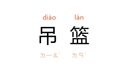 ⒈ 亦作“吊篮”。升降机上运送人上下的篮状装置。