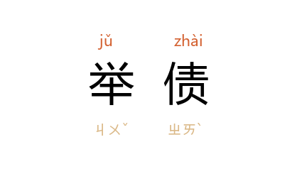 引《梁书·王志传》:“京师有寡妇无子,姑亡,举债以敛葬。”唐 李德裕 《论河东等道比远官加给俸料状》:“选人官成后,皆於城中举债,到任填还。”宋 苏轼 《奏浙西灾伤第一状》:“家家典卖,举债出息,以事田作。”鲁迅 《坟·靡罗诗力说》:“更设法举债,以振其穷。”