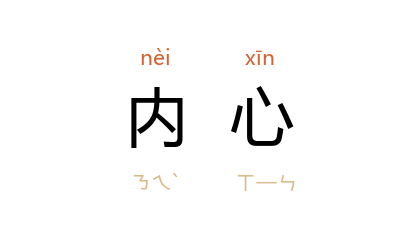 ⒈ 心或思想。古人以心为思想的器官,因心和思想皆在身内,故称为「内心」。