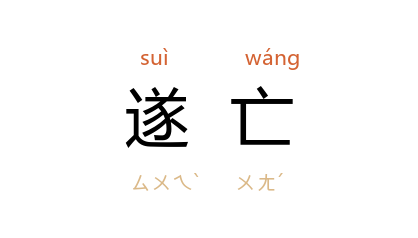 引《荀子·正论》:“以是百官也令行於境内,国虽不安,不至於废易遂亡,谓之君。”王先谦 集解引 王念孙 曰:“遂亦读为坠,谓不至於废弛坠失也。”宋 叶适 《黄文叔诗说序》:“然性情愈昏惑,而各意为之説,形似摘裂,以从所近,则诗乌得復兴,而宜其遂亡也哉!”