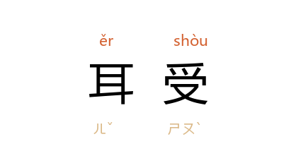 引北齐 颜之推 《颜氏家训·勉学》:“谈説製文,援引古昔,必须眼学,勿信耳受。”宋 苏轼 《<范文正公文集>序》:“此岂口传耳受,尝试为之,而侥倖其或成者哉!”清 袁枚 《随园诗话补遗》卷七:“余所到必有日记,因 师丹 之老而善忘也。其耳受佳句,亦随记带归。”