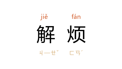 引三国 魏 曹丕 《群臣诏》其二:“真定郡 梨大若拳,甘若蜜,脆若菱,可以解烦释渴。”晋 崔豹 《古今注·草木》:“﹝木蜜﹞味如蜜,解烦止渴。”鲁迅 《故事新编·铸剑》:“一见之后,便即解烦释闷,天下太平。”