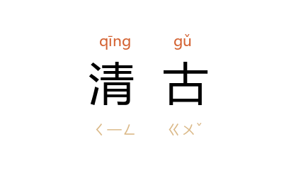 引唐 段成式 《酉阳杂俎续集·支诺皋上》:“道士缓步庭中,年可四十,丰仪清古。”宋 陈亮 《与周立义参政》书:“左朝奉郎 叶衡,右迪功郎 孙伯虎,文章清古。”清 蒋士铨 《第二碑·寻诗》:“你看那柳阴之下,坐着一位老丈,鬚眉清古。”