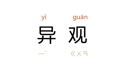 引汉 班固 《西都赋》:“殊形诡制,每各异观。”晋 左思 《魏都赋》:“壹八方而混同,极风采之异观。”