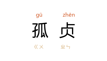引南朝 宋 鲍照 《学刘公干体》诗之二:“岁物尽沦伤,孤贞为谁立?赖树自能贞,不计迹幽澁。”唐 陆贽 《论裴延龄奸蠹书》:“或者圣旨以其甚遭嫉怨,而谓之孤贞,可託腹心;以其好进谗諛,而谓之尽诚,可寄耳目。”宋 谢翱 《琼花引》:“孤贞抱一不再识,夜归 閬风 晓无蹟。”王闿运 《<桂颂>序》:“似别有怀抱,自负孤贞,不夺不移,有符於大道。”