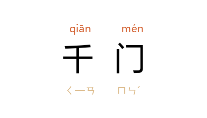 胡三省 注:“汉武帝 起 建章宫,度为千门万户,后世遂谓宫门为千门。”