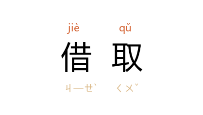 引《三国志·魏志·王粲传》“楨 以不敬被刑,刑竟署吏” 裴松之 注引《典略》:“文帝 尝赐 楨 廓落带,其后师死,欲借取以为像。”宋 苏轼 《和子由送春》:“凭君借取法界观,一洗人间万事非。”清 陈维崧 《念奴娇·开元寺纳凉听客话》词:“语久呜咽难胜,向戍楼借取、四条絃续。”