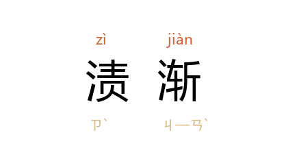 引清 侯方域 《万孝子割股议》:“今有人於此诚能诡且激焉而勉为一善,其明日又復为之,又明日又復为之,渍渐而为之不止,则是终日而且皆善也。”清 戴名世 《<小学论选>序》:“论之体既立而经义之与论同为古文之派别者,亦浸寻渍渐以合于古,此则余之区区以古文为时文之意也。”
