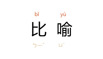 ⒉ 修辞学上的辞格之一。也叫“譬喻”。即以甲事物来比拟乙事物。它在形式上,具有本体、喻体和比喻词三个成分。因这三个成分的异同和隐现,比喻可分为明喻、隐喻(暗喻)和借喻三类。