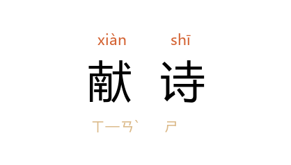 ⒈ 进献诗作。古代多用以示讽谏或歌颂。泛指奉献诗作。