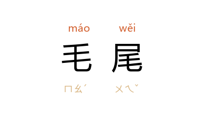 引汉 王褒 《责髯奴文》:“癩鬚瘦面,常如死灰,曾不如犬羊之毛尾。”宋 苏轼 《司竹监烧苇园以其徒会猎园下》诗:“风迴焰卷毛尾热,欲出已被苍鹰遮。”