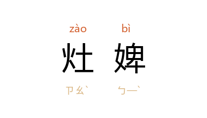 引宋 周必大 《元宵煮浮圆子前辈似未曾赋此坐间成四韵》:“汤官寻旧味,灶婢诧新功。”清 谭嗣同 《仁学》二十:“向以为米盐凌杂,鸡豚詬誶,特老媪灶婢之所用心,及泛览于今之士大夫,乃莫不然。”