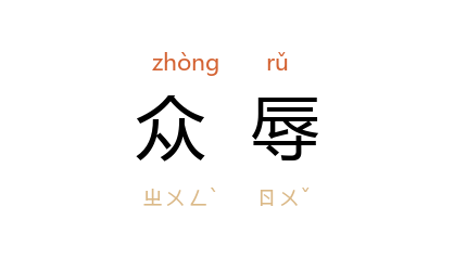 引《史记·魏其武安侯列传》:“武安 谓 灌夫 曰:‘ 程 李 俱东西宫卫尉,今众辱 程将军,仲孺 独不为 李将军 地乎?’”《汉书·爰盎传》:“盎 兄子 种 为堂侍骑,諫 盎 曰:‘君众辱之,后虽恶君,上不復信。’”明 张居正 《乞宥言官疏》:“臣窃以皇上一向虚己受諫,今一旦众辱此人,将使居言路者,畏惧自保,而不敢正言。”