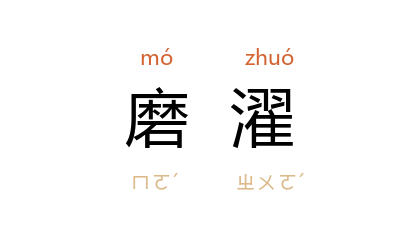 引宋 岳飞 《奏李道归顺状》:“於是多遣信实之人,密行宣布朝廷之德意,説諭约结,俾其磨濯一心,以待王师之举,相为应援。”明 方孝孺 《与郑叔度书》:“侍奉之餘,虽常以古书自磨濯,遇有逆意处,思有师友讲説而不可见。”清 陈廷焯 《白雨斋词话》卷四:“江橙里 词清远而藴藉, 沉沃田 称其‘劌鉥肝肾,磨濯心志,苦心孤诣以为词,可谓难矣!’”