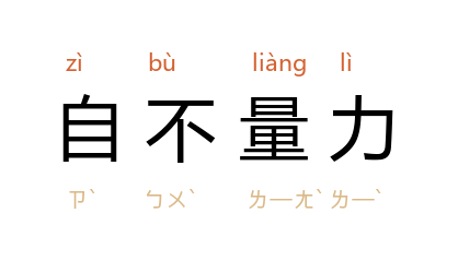 ⒈ 量:衡量,估计。不衡量自己的能力。形容对自己估计太高,多指做力不能及的事。
