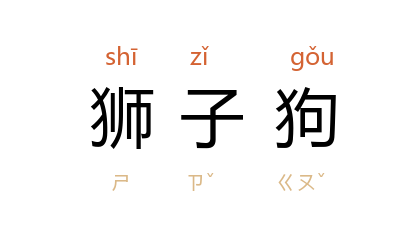 ⒈ 动物名。哺乳纲食肉目。头尾之毛长而蓬松,状如狮子,故称为「狮子狗」。