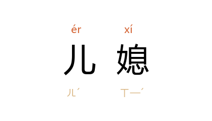 引老舍 《四世同堂》五二:“天佑太太 正搂着两个孙子,怕他们吓着。听到儿媳的话,她把孩子交过去,轻轻的走出来。”周立波 《暴风骤雨》第一部二:“宾县 他儿媳的娘家捎封信来说:他们那儿来了工作队。”