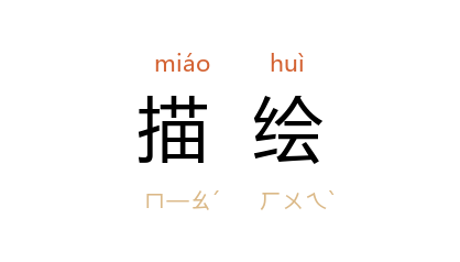 引杨朔 《泰山极顶》:“泰山 极顶看日出,历来被描绘成十分壮观的奇景。”郭小川 《人民万岁》诗:“应当作千万幅画,把我们的人民描绘。”