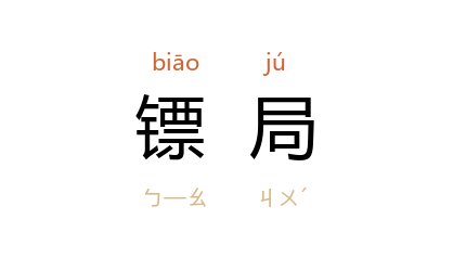 ⒈ 旧时以保护行旅客商安全为业的机构,在接受客户的纳资委托以后即派镖客护送,不让强盗抢劫。