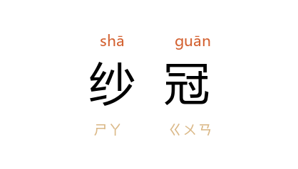 ⒈ 纱制官帽。 《宋史·吴奎传》:“﹝ 吴奎 ﹞奉使 契丹,会其主加称号,要入贺。 奎 以使事有职,不为往。归遇 契丹 使於涂, 契丹 以金冠为重,纱冠次之。故事,使者相见,其衣服重轻必相当。至是,使者服纱冠,而要 奎 盛服。参见“纱帽”。