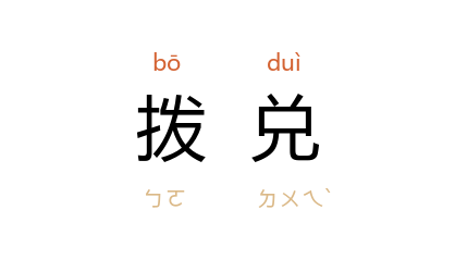 引清 黄六鸿 《福惠全书·钱穀·粮米派兑》:“其最可恶者……一在串通旗甲,将强有力者之粮,贿买好帮次拨兑……将懦无势为者之粮,分拨坏帮次。”燕丁 《砖》:“咱不与通融通融,拨兑一下?”