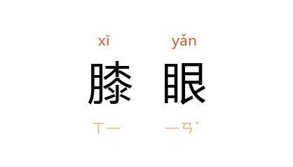 引唐 孙思邈 《千金要方·风毒脚气·论风毒状》:“凡灸八处……第四膝眼穴,在膝头骨下两傍陷者宛宛中是。”《医宗金鉴·刺灸心法要诀·胃经分寸歌》:“犊鼻膝臏陷中取,膝眼三寸下三里。”注:“从梁丘下行过膝盖骨,下胻骨上陷中,俗名膝眼,此处陷中两旁有空状如牛鼻在外侧者,犊鼻穴也。”