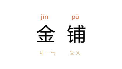叶葱奇 注:“金铺,指门环下面的铜片。 《增韵》:‘所以啣环者,作鱼蛇之形,以铜为之,故曰金铺。’”