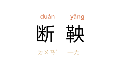 ⒈ 砍断马鞅。鞅,夹贴在马颈两旁的皮条。《左传·襄公十年》:“齐侯驾,将走邮棠。太子与郭荣扣马,曰:'师速而疾,略也。将退矣,且社稷之主不可以轻,轻则失众,君必待之!'将犯之,太子抽剑断鞅,乃止。”杨伯峻注:“太子砍断马鞅,则居中两马与衡离,不能持车矣。”后用作强谏之典。