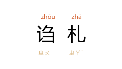 引元 郑廷玉 《后庭花》第三折:“覰了 王庆 呵慌张势煞,这汉就里决诌札。”元 张寿卿 《红梨花》第一折:“直恁般性格儿诌吒。”