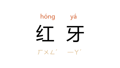 ⒈ 乐器名。指拍板。因多用象牙或檀木做成,再漆成红色,故称为「红牙」。