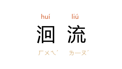 引《百喻经·口诵乘船法而不解用喻》:“若入海,水漩洑洄流磯激之处,当如是捉,如是正,如是住。”明 《新滩观捕鱼歌》:“滩际洄流急且深,承流鼓浪鱼竞集。”清 俞樾 《茶香室续钞·取第一泉水》:“江心泉,为天下第一,然有龙窝,洄流甚急。”