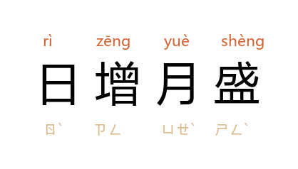 引清 王韬 《瓮牖馀谈·西国印书考》:“明 崇禎 时, 麻荫 朱实 立第一印书局,印器从 英 运至,其后日增月盛。”梁启超 《中国史叙论》第二节:“日本 近来著东洋史者,日增月盛,实则 中国 史之异名耳。”