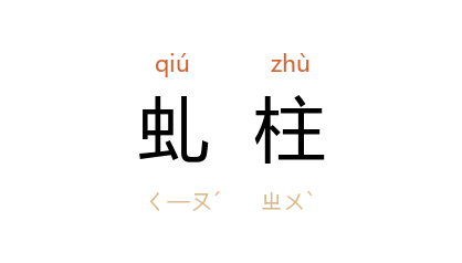 引南朝 梁 王筠 《上太极殿千夫表》:“绣栭鏤槛,延曜光辉,虯柱虹梁,杳冥云雾。”南朝 梁 江淹 《丽色赋》:“架虬柱之严丽,亘虹梁之峻密。”