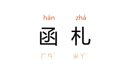引《冷眼观》第十八回:“我也是气昏了,好在你函札具在,笔墨犹新,来日谢恩时,我定要将你致我的原信呈上去。”梁启超 《小说与群治之关系》:“文之浅而易解者,不必小説;寻常妇孺之函札,官样之文牘,亦非有艰深难读者存也。”朱自清 《白采》:“但 平伯 因转信的关系,却和他常通函札。”